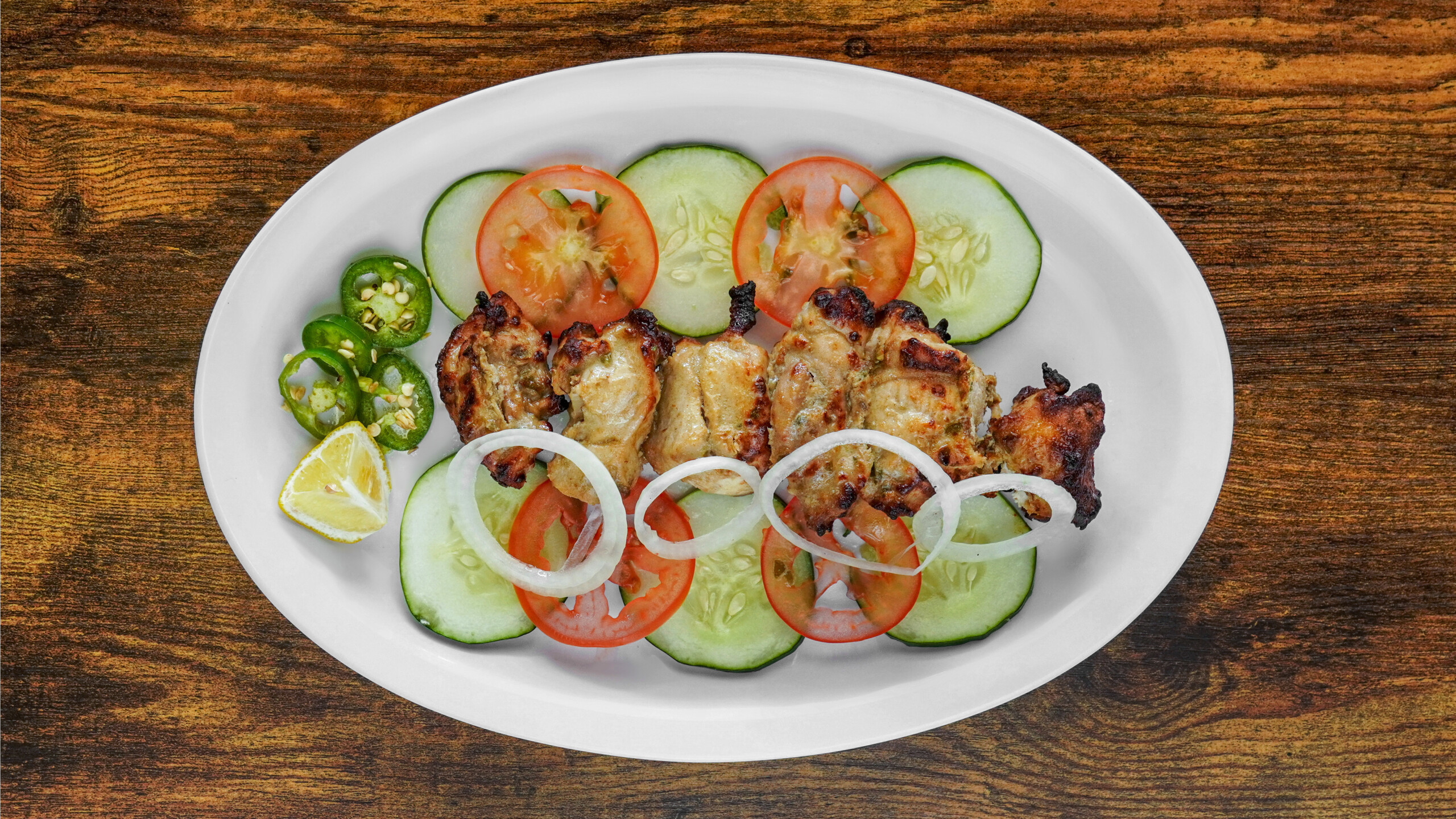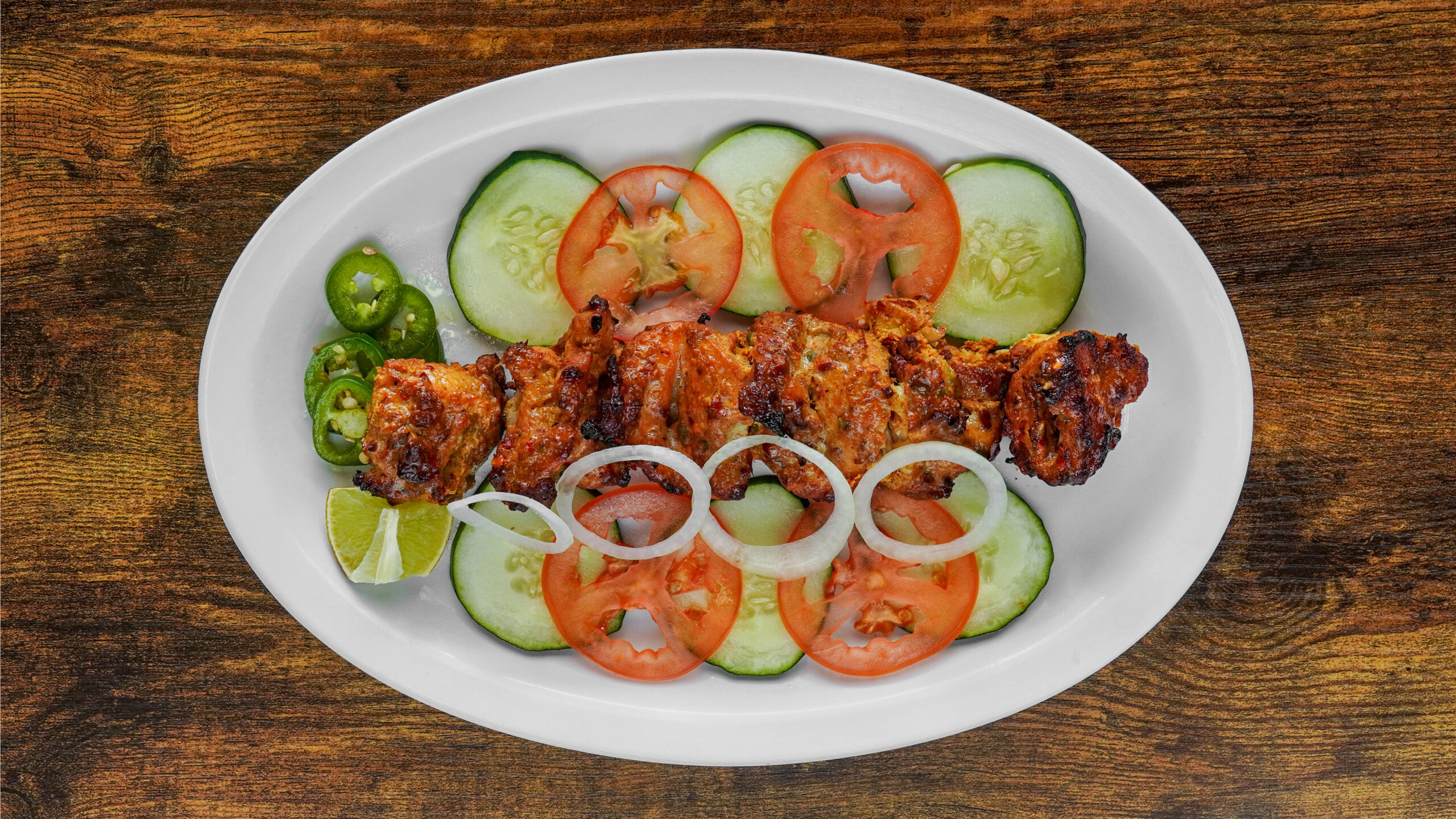 Tender chicken thigh cubes marinated in bold tikka spices and grilled over open flame for that signature smoky char. Extra juicy, extra flavor — just how BBQ should be.